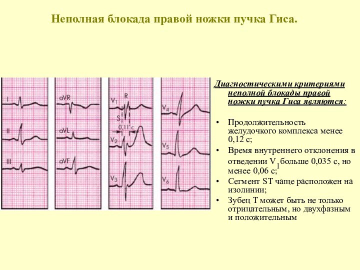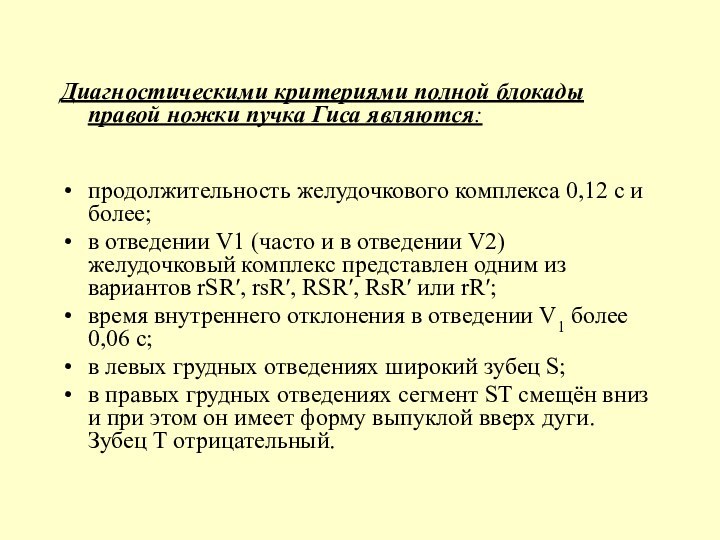 Диагностическими критериями полной блокады правой ножки пучка Гиса