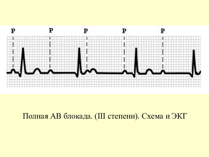 Полная АВ блокада. (III степени). Схема и ЭКГ