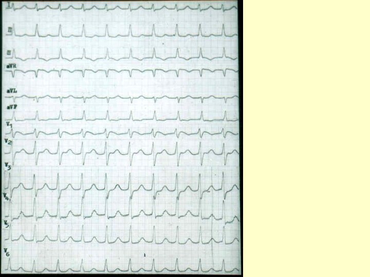 - В отведении aVR увеличенный зубец R (поздняя активация'). Характерно смещение переходной зоны влево в грудных отведениях