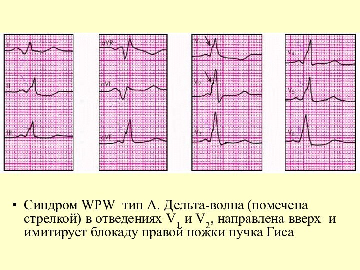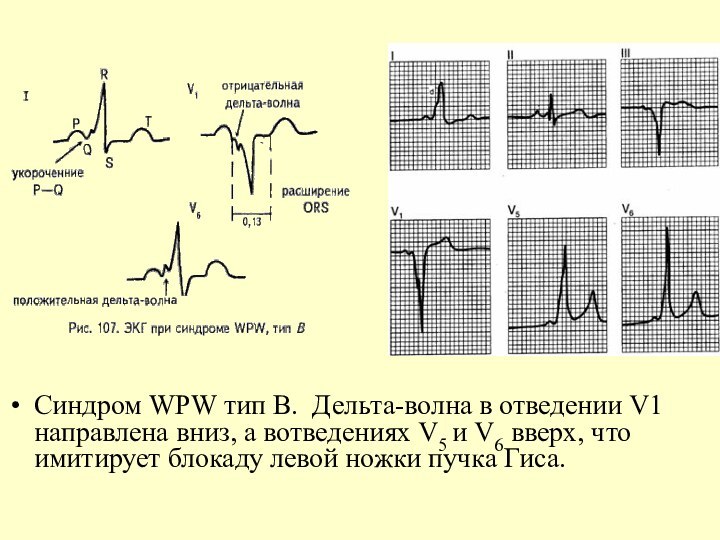 Синдром WPW тип B. Дельта-волна в отведении V1