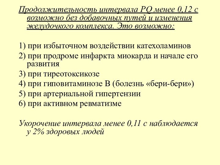 Укорочение интервала менее 0,11 с наблюдается у 2% здоровых людей