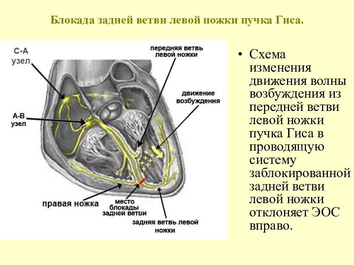 пучка Гиса в проводящую систему заблокированной задней ветви левой ножки отклоняет ЭОС вправо.