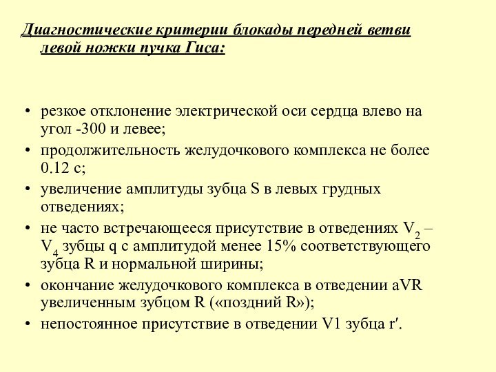Диагностические критерии блокады передней ветви левой ножки пучка