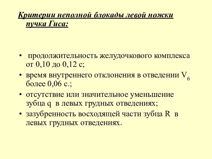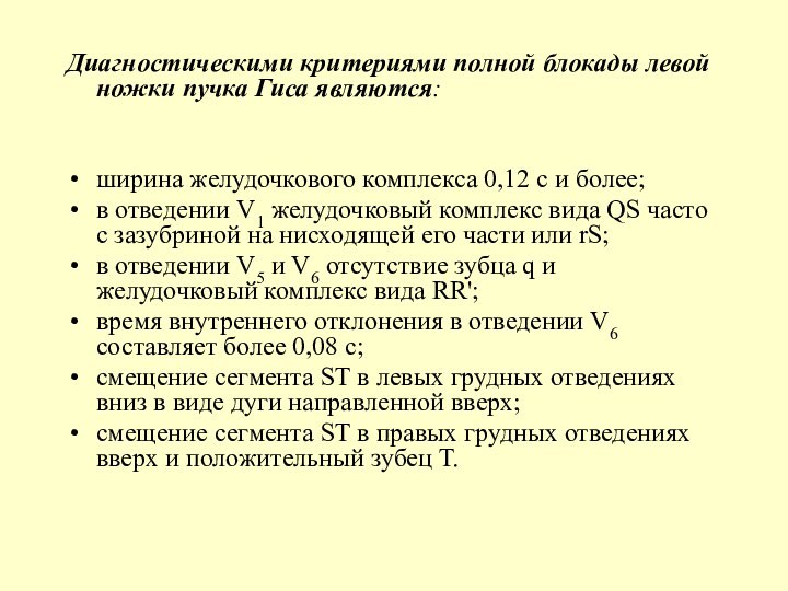 Диагностическими критериями полной блокады левой ножки пучка Гиса