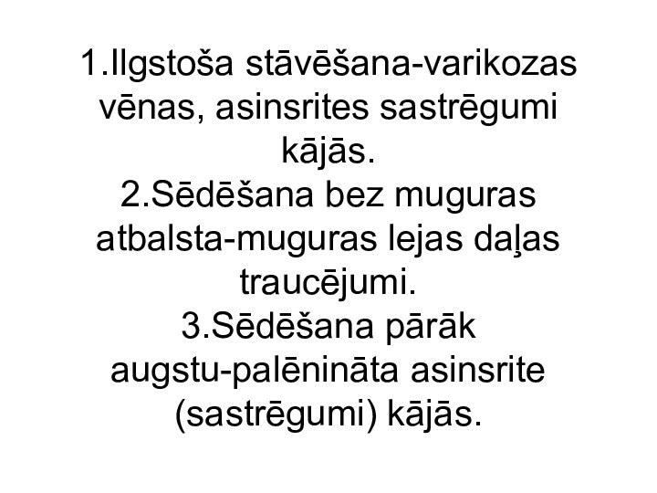 1.Ilgstoša stāvēšana-varikozas vēnas, asinsrites sastrēgumi kājās.