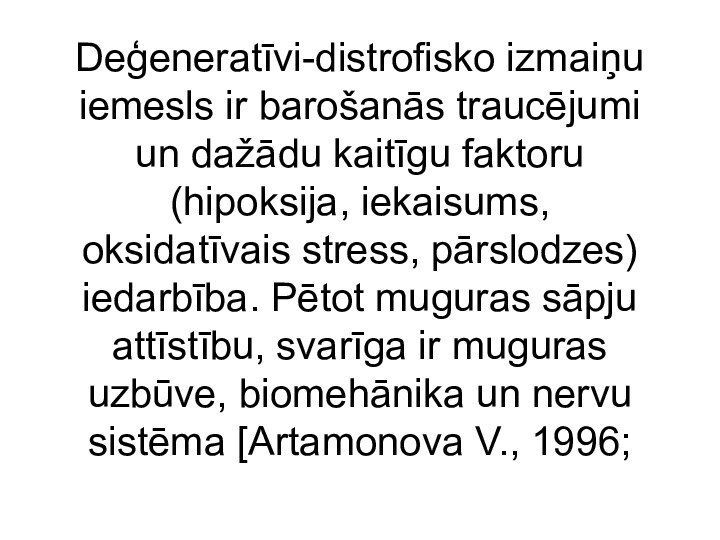 Deģeneratīvi-distrofisko izmaiņu iemesls ir barošanās traucējumi un dažādu