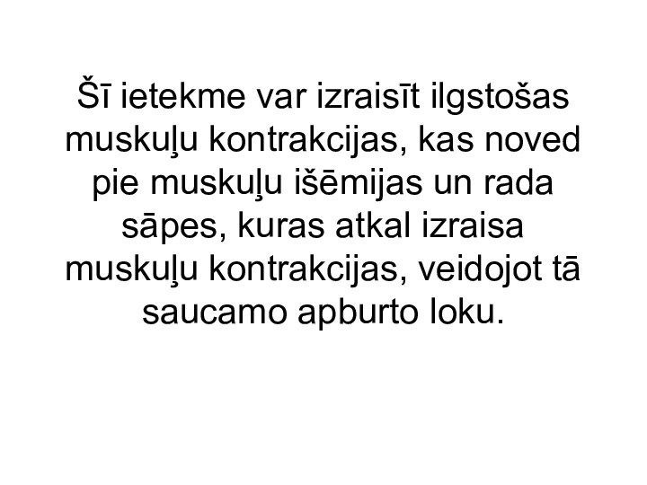 Šī ietekme var izraisīt ilgstošas muskuļu kontrakcijas, kas