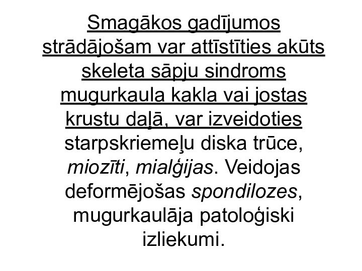 Smagākos gadījumos strādājošam var attīstīties akūts skeleta sāpju