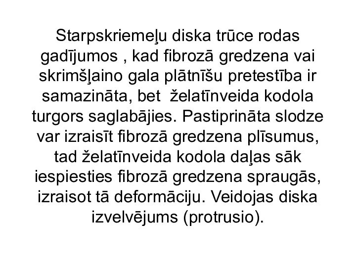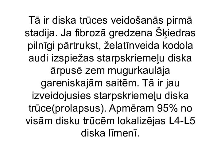 Tā ir diska trūces veidošanās pirmā stadija. Ja
