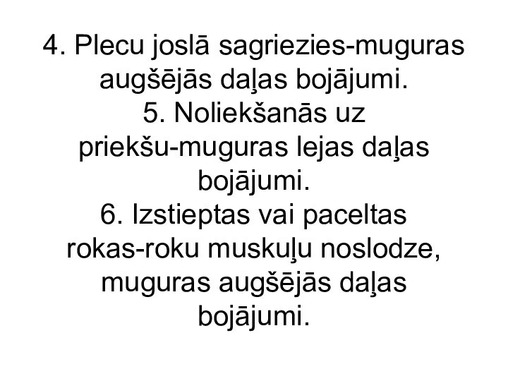 4. Plecu joslā sagriezies-muguras augšējās daļas bojājumi.