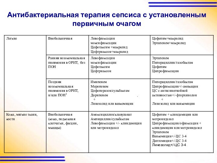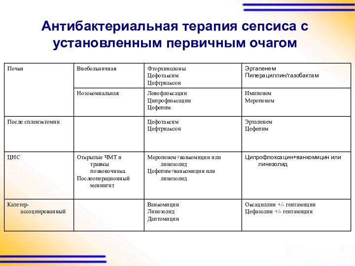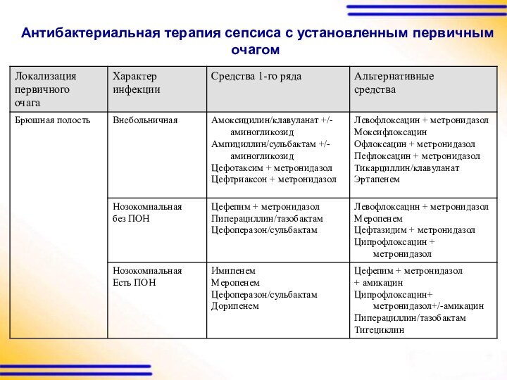 Антибактериальная терапия сепсиса с установленным первичным очагом
