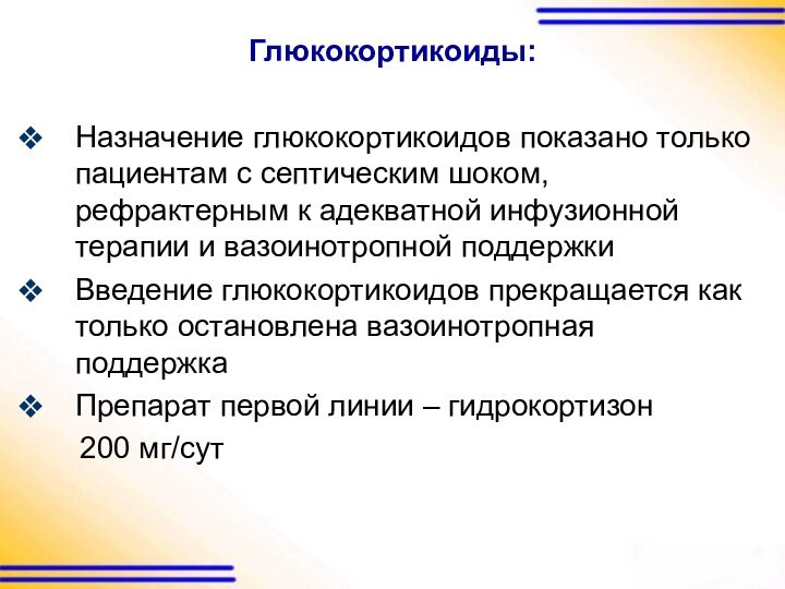 Назначение глюкокортикоидов показано только пациентам с септическим шоком,