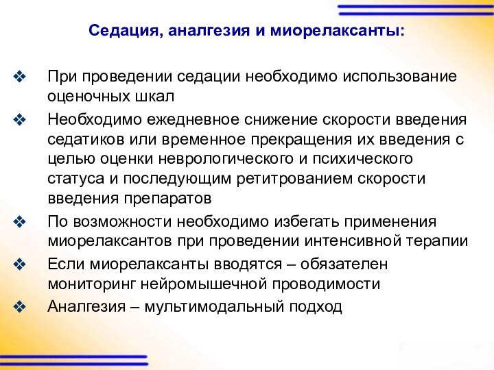 По возможности необходимо избегать применения миорелаксантов при проведении интенсивной терапии