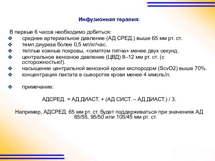 артериальное давление (АД СРЕД.) выше 65 мм рт. ст.
