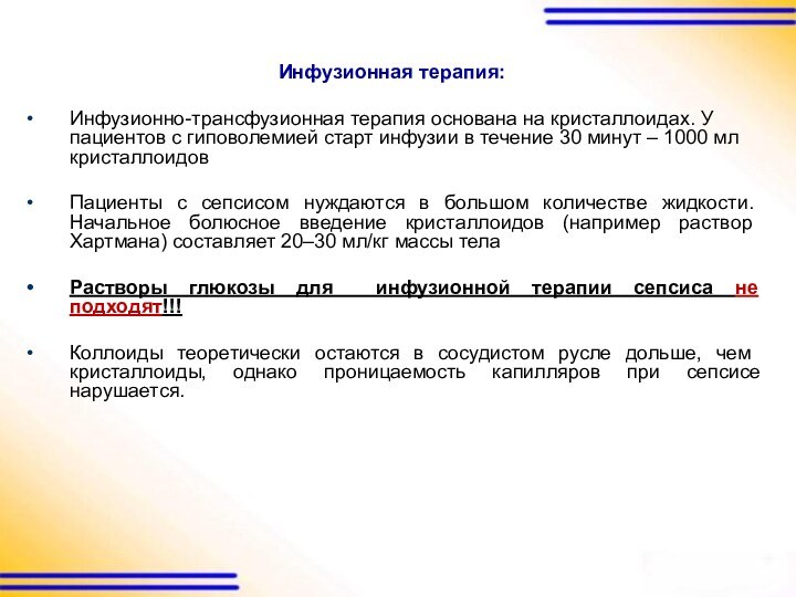 Растворы глюкозы для инфузионной терапии сепсиса не подходят!!!
