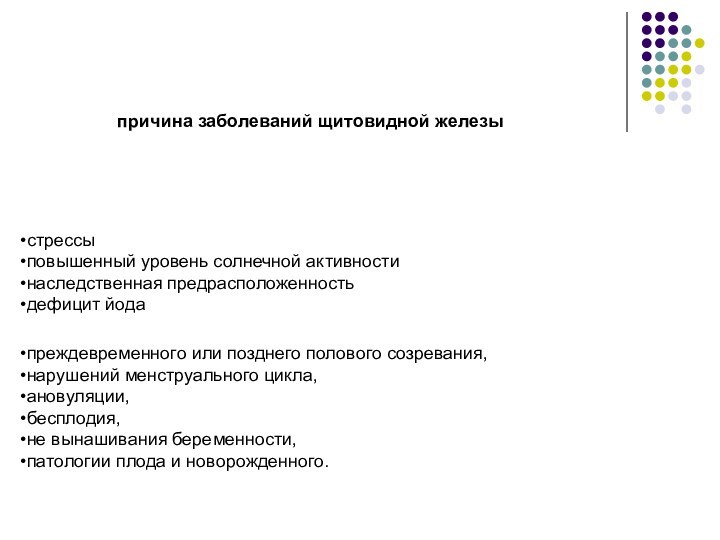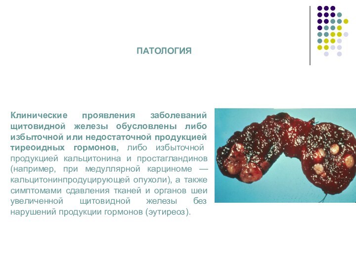 щитовидной железе (врождённый дефект развития щитовидной железы, уменьшение объёма ее функционирующей ткани после операции/ воспаления, разрушения радиоактивным йодом или опухолью и т.д.).
