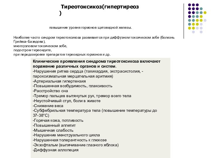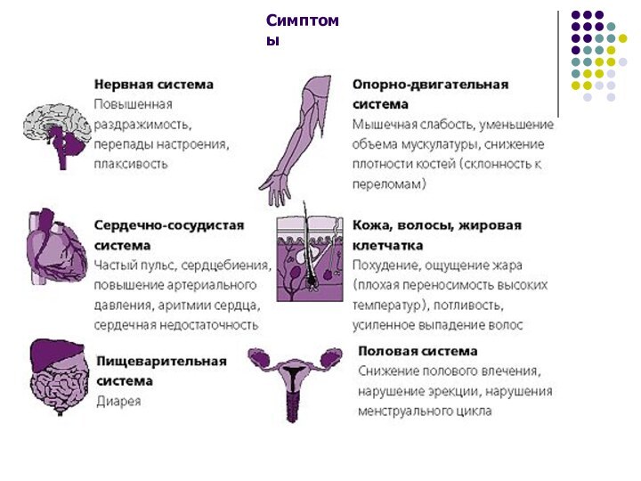 Клинические проявления синдрома тиреотоксикоза включают поражение различных органов и систем.