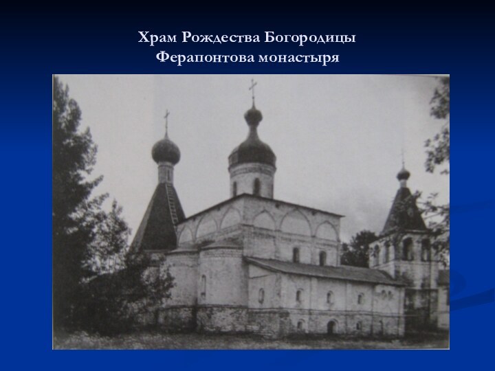 Слайд 4 Храм Рождества Богородицы Ферапонтова монастыря
