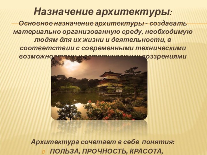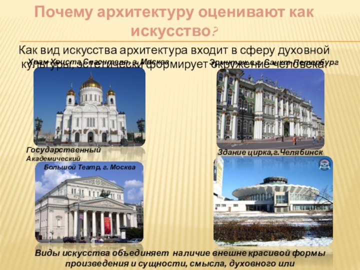 архитектура входит в сферу духовной культуры, эстетически формирует окружение