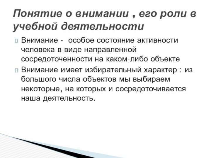 Понятие о внимании , его роли в учебной деятельности
