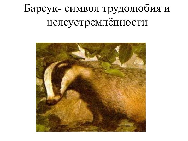 Слайд 10 Барсук- символ трудолюбия и целеустремлённости