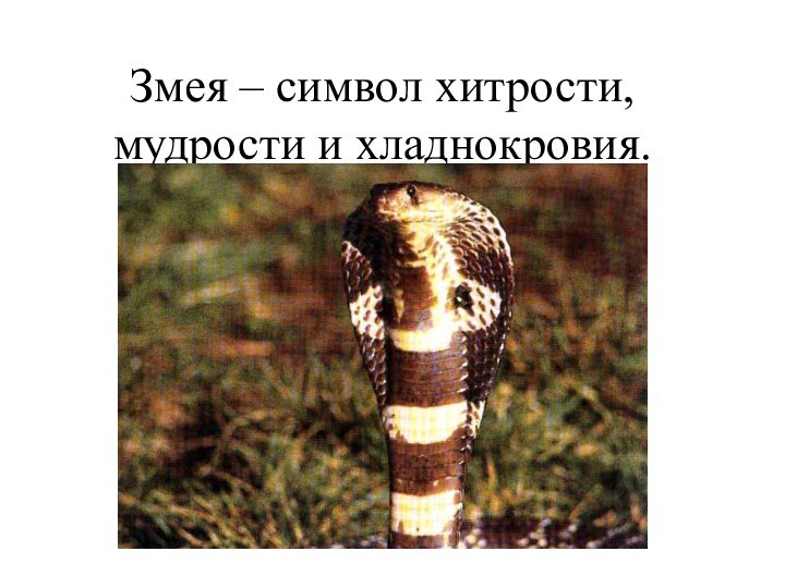 Слайд 8 Змея – символ хитрости, мудрости и хладнокровия.