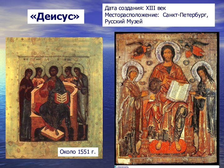 «Деисус» Дата создания: XIII векМесторасположение: Санкт-Петербург, Русский МузейОколо 1551 г.