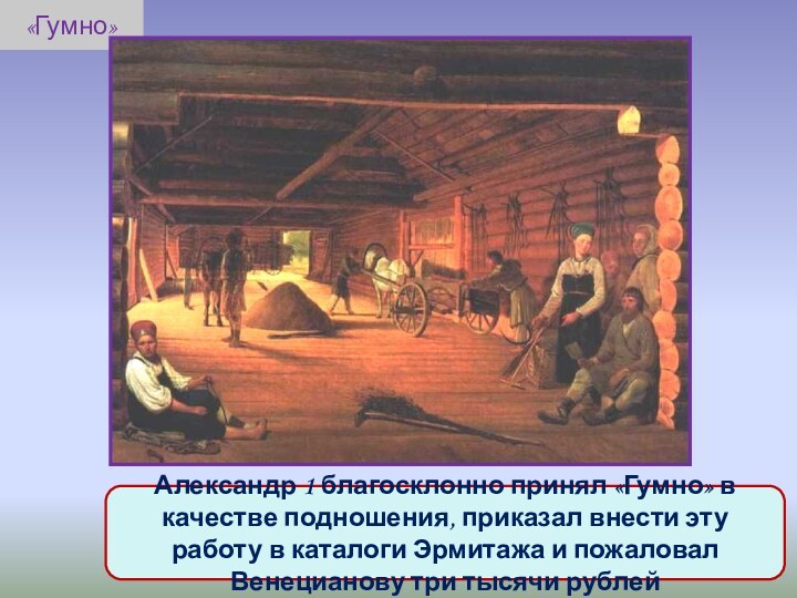 Александр 1 благосклонно принял «Гумно» в качестве подношения,