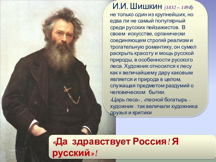 «Царь леса» , «лесной богатырь - художник - так величали художника друзья и критики
