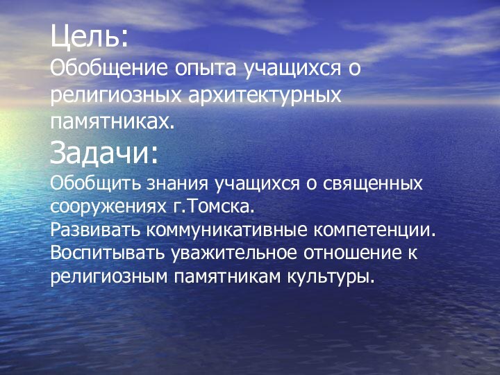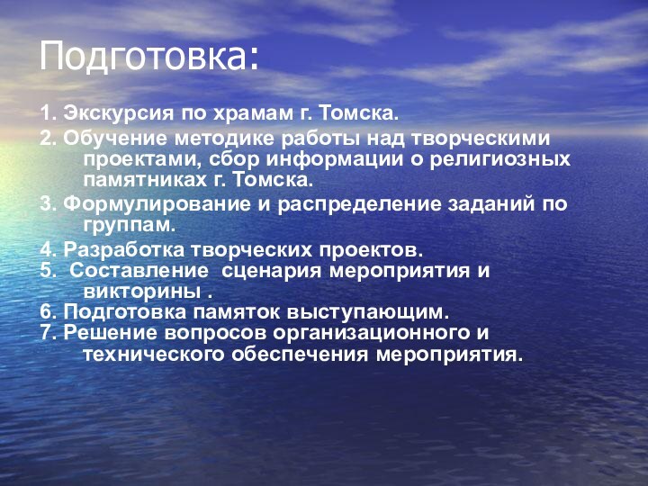 Подготовка: 1. Экскурсия по храмам г. Томска. 2. Обучение методике