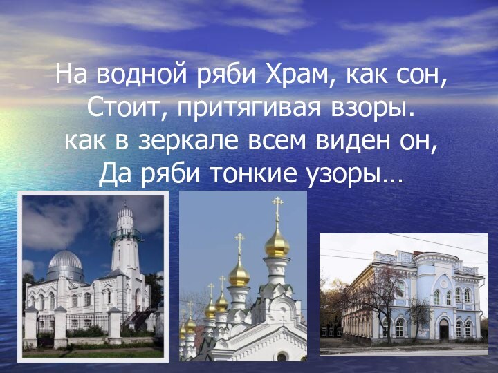 в номинациях: Православный храм Мусульманский храм (мечеть) Священное сооружение иудеев (синагога) Католический храм