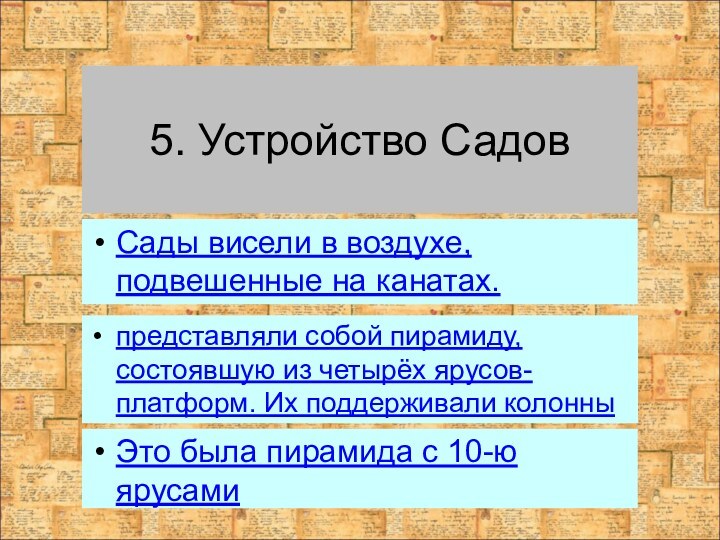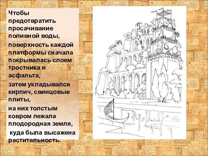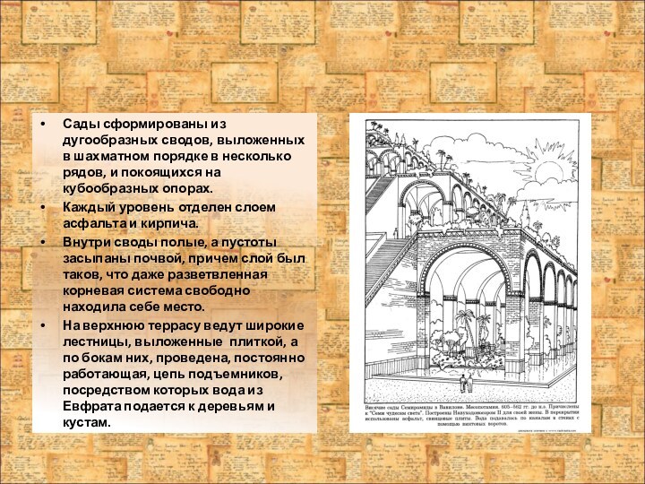 даже не были поддерживаемы канатами, как считали раньше. Сады были скорее не висячими, а выступающими.