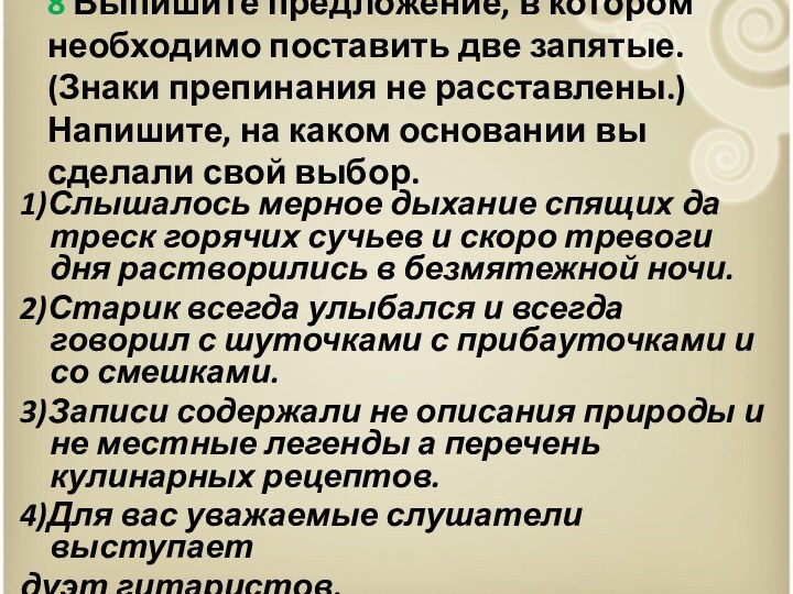 8 Выпишите предложение, в котором необходимо поставить две