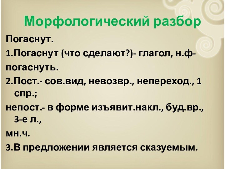 1.Погаснут (что сделают?)- глагол, н.ф-