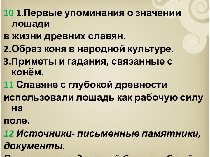 10 1.Первые упоминания о значении лошади