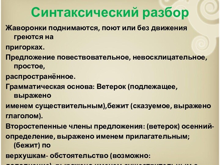 Грамматическая основа: Ветерок (подлежащее,
