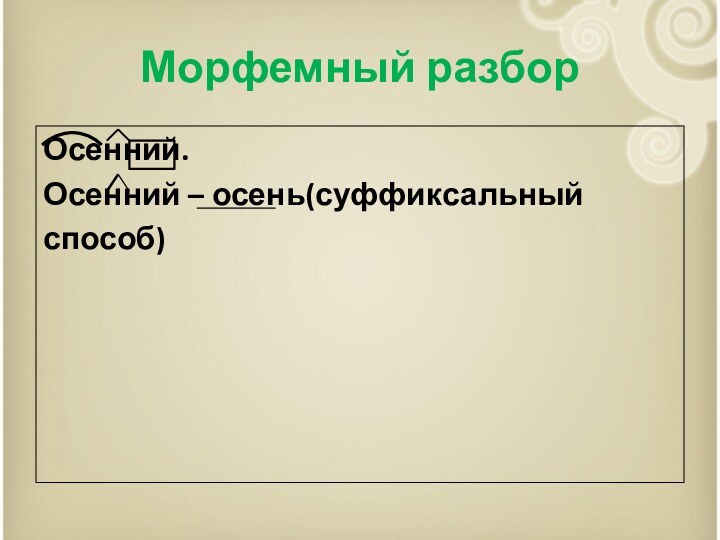 Осенний – осень(суффиксальный