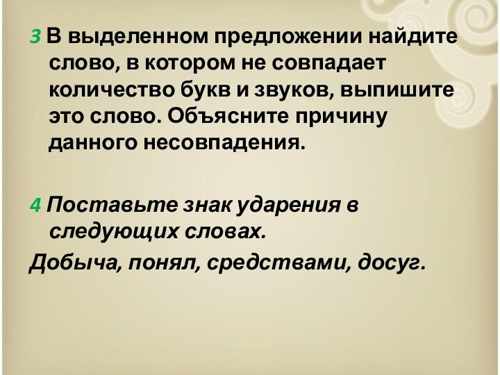 3 В выделенном предложении найдите слово, в котором не совпадает