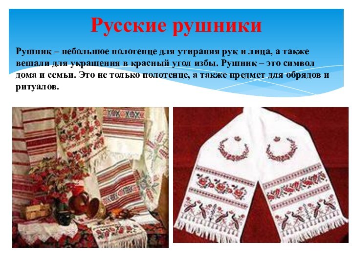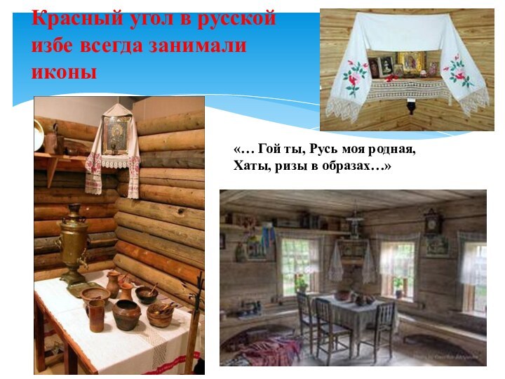 угол избы. Рушник – это символ дома и семьи. Это не только полотенце, а также предмет для обрядов и ритуалов.