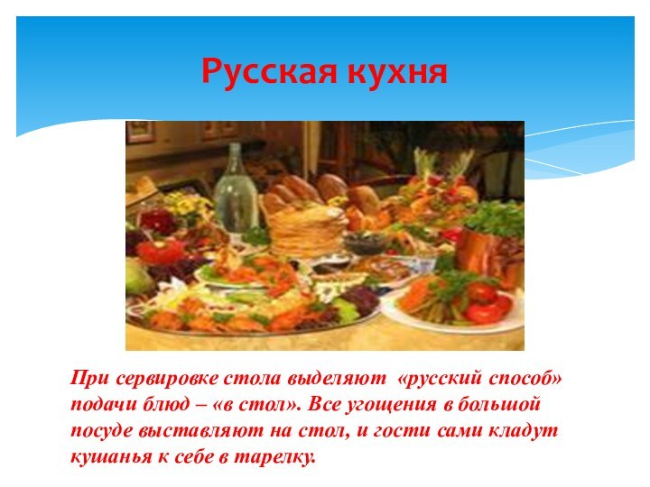 выставляют на стол, и гости сами кладут кушанья к себе в тарелку.