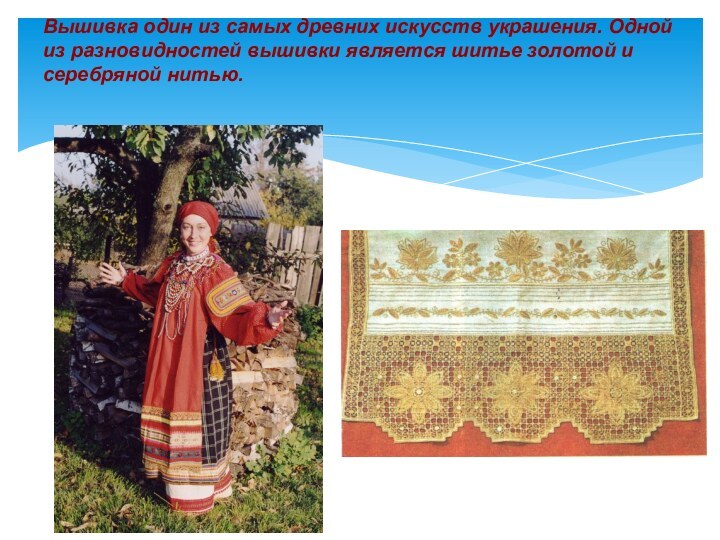 из разновидностей вышивки является шитье золотой и серебряной нитью.