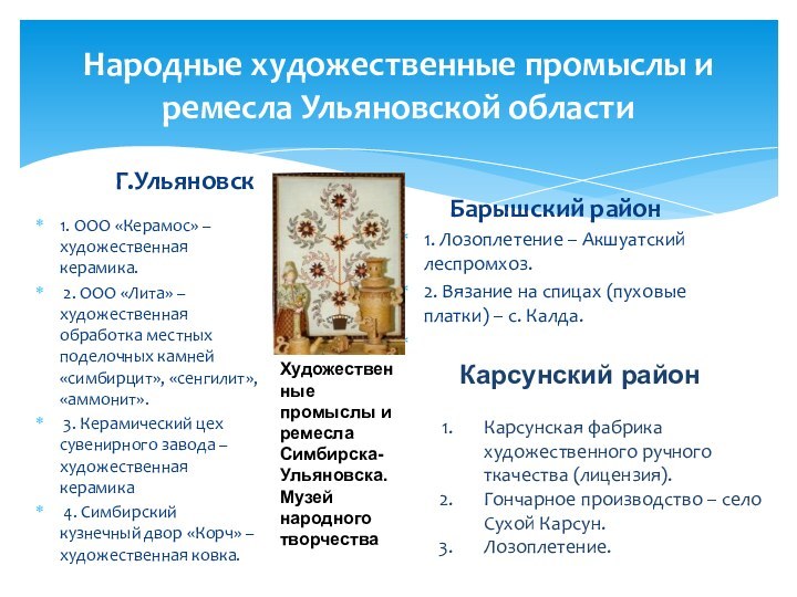 Кузоватовский промбыткомбинат – резьба и роспись по дереву.