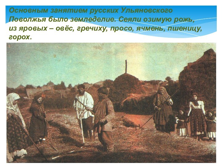 Основным занятием русских Ульяновского Поволжья было земледелие. Сеяли