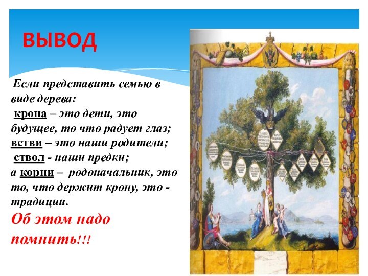 а корни – родоначальник, это то, что держит крону, это - традиции.
