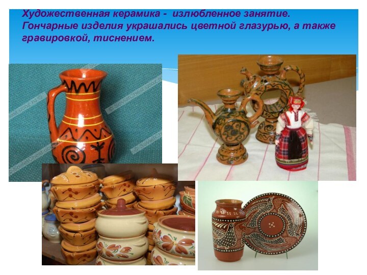 Художественная керамика - излюбленное занятие. Гончарные изделия украшались