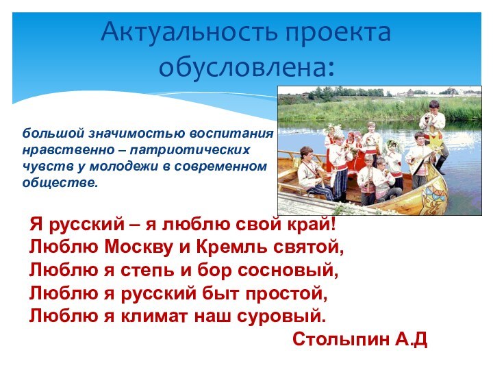 Воспитание чувства гордости за талант и самобытность русского народа.