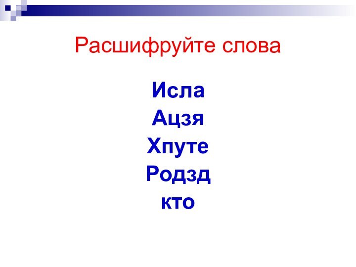 Расшифруйте словаИслаАцзяХпутеРодздкто