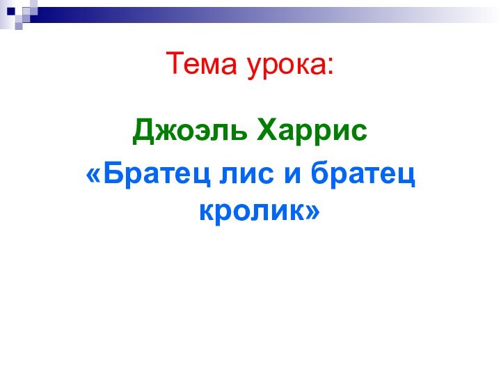 Тема урока:Джоэль Харрис«Братец лис и братец кролик»