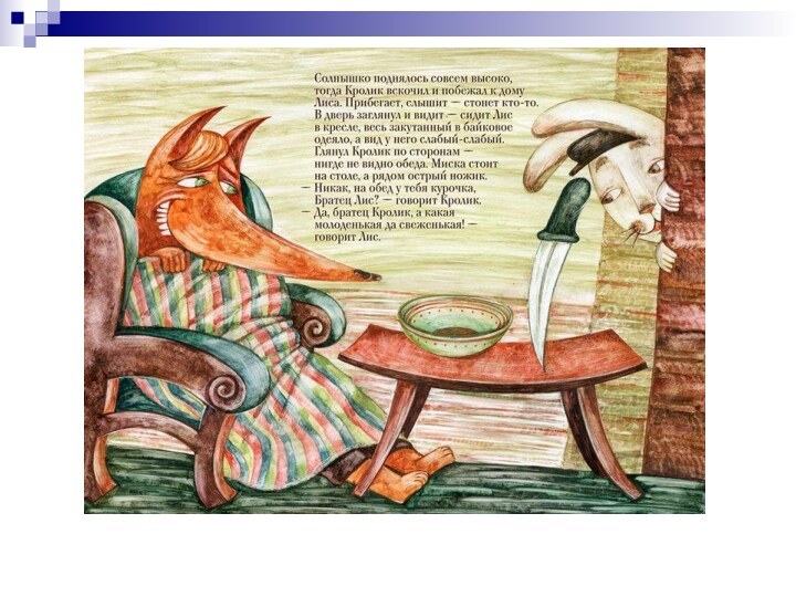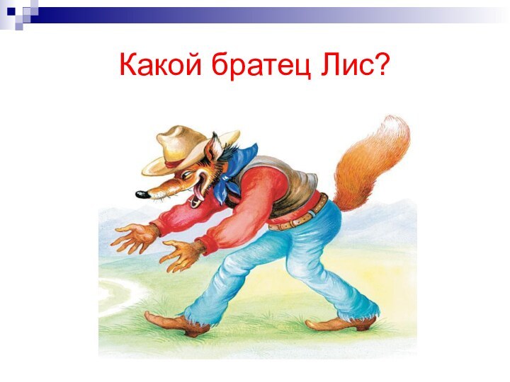 Урок литературного чтения во 2 классе Проверка домашнего задания ЗагадкаПо двору он ходит смело, Есть и гребень, есть и шпоры. Только Расшифруйте словаИслаАцзяХпутеРодздкто Кто лишний?ЛисаЗаяцПетухДроздКот Кто лишний?ЛисаЗаяцПетухДроздКот Пересказ сказки Какая сказка? Тема урока:Джоэль Харрис«Братец лис и братец кролик» Цель урока:Познакомиться с русской народной сказкой.Познакомиться с зарубежной сказкой.Познакомиться с татарской народной сказкой. Цель урока:Познакомиться с русской народной сказкой.Познакомиться с зарубежной сказкой.Познакомиться с татарской народной сказкой. Какой братец Кролик?Трусливый -храбрыйосторожный- наивныйхитрый -доверчивыйсмекалистый - беззащитныйумный - глупый Какой братец Кролик?Трусливый -храбрыйосторожный- наивныйхитрый -доверчивыйсмекалистый - беззащитныйглупый - умный Какой братец Лис?