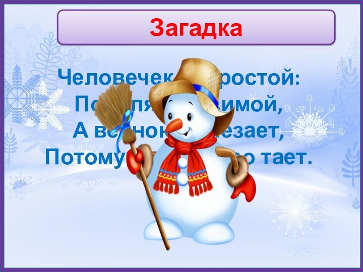 ЗагадкаЧеловечек непростой: Появляется зимой, А весною исчезает, Потому что быстро тает.